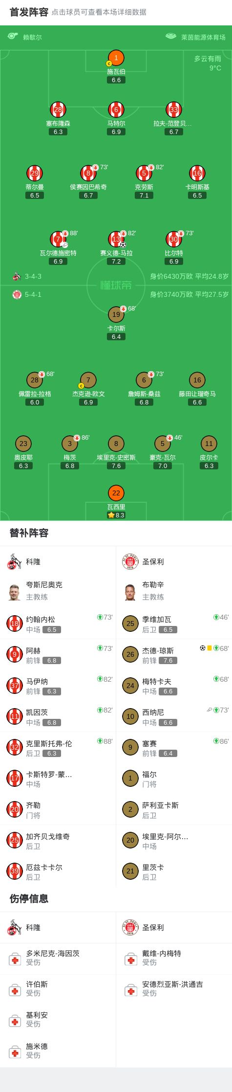 北京时间12月6日,德国足球甲级联赛第13轮,科隆坐镇主场迎战圣保利。比赛中,科隆由瓦尔德施密特送出助攻,赛义德-马拉破门得分,为主队取得领先。随后在下半场补时阶段,圣保利由西纳尼助攻杰德-琼斯完成进球,成功扳平比分。最终双方以1比1握手言和。